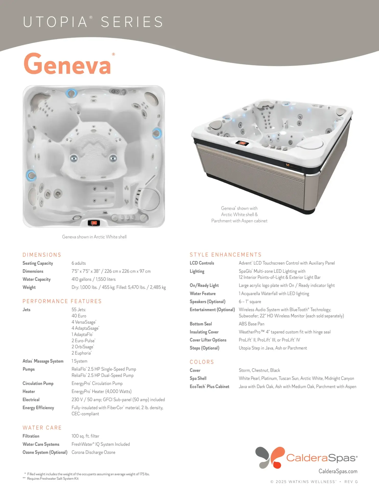 The Geneva features more targeted massage seats than any other Caldera spa. As you move from seat to seat in the Geneva, you’ll experience a full body massage, with jets that focus on your neck, shoulders, upper back, mid back, lower back, hips, thighs, calves, feet and wrists.