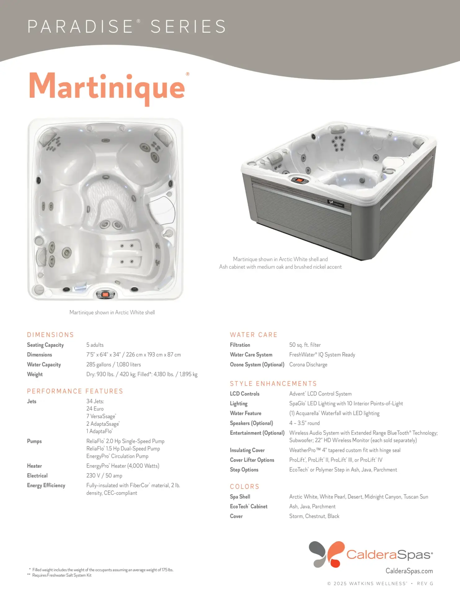 The Martinique features more targeted massage seats than any other Caldera spa. As you move from seat to seat in the Martinique, you’ll experience a full body massage, with jets that focus on your neck, shoulders, upper back, mid back, lower back, hips, thighs, calves, feet and wrists.