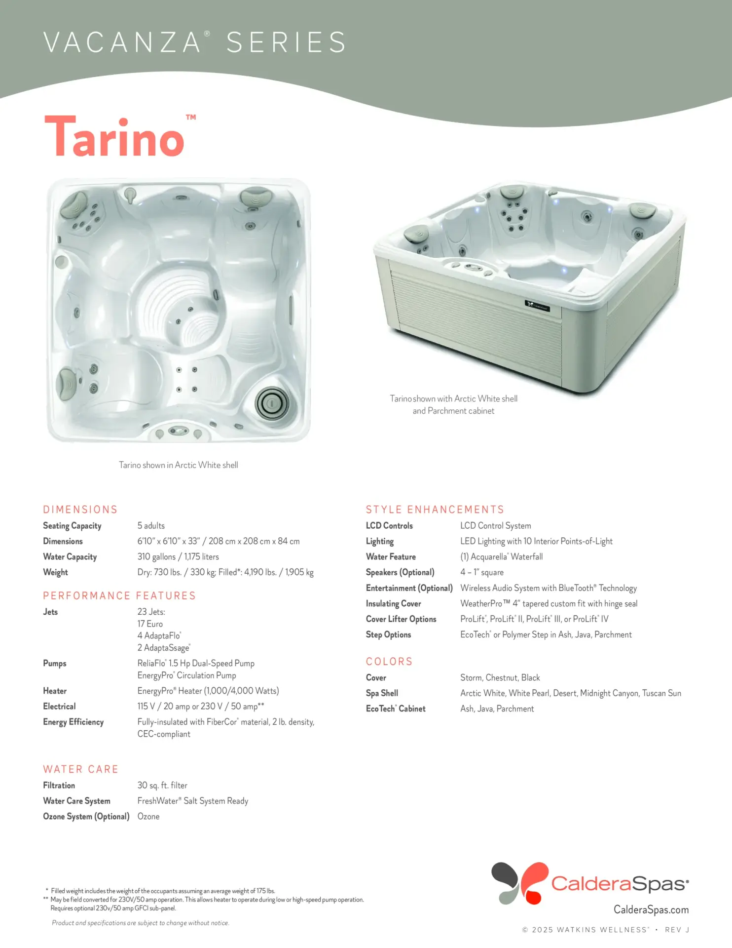 Available in three contemporary colors with specially chosen wood grain and metallic accents, you can coordinate your spa with your house or patio.